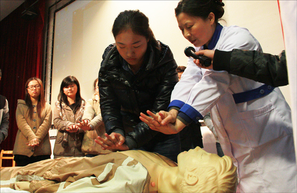 “最近几年经常都能听到什么院前急救,8分钟黄金时间,说的其实就是徒手心肺复苏技术,在国外基本都是从小学开始就教导小孩要学会,已经是很普及的知识了。”校医院许绪清护士长介绍,“我们每一年都给大一的新生介绍心肺复苏技术就是希望他们可以从中学到些东西,应付紧急突发的状况。”