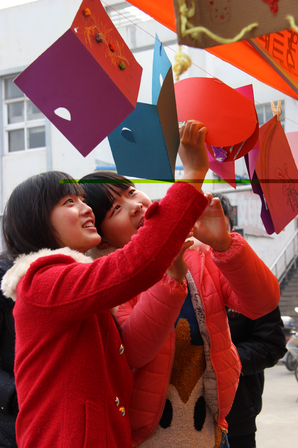 在活动现场,学生们在放着手工贺卡的桌子前面围了一圈又一圈,排队等待写下自己的祝福。棚子四周也挂满了写着祝福的卡片。随手打开一张迎风摇曳的手工贺卡,上面写着的心语便映入眼帘:“亲爱的孩子:你现在忍受着别人无法忍受的寂寞与痛苦,但坚持住,好吗?为了自己,为了在外为你拼搏的父母。不守寂寞,怎见繁华!加油!”还有一张贺卡这样写道:“小朋友,如果你收到这张贺卡,说明你很幸福,因为有人关心你,有位姐姐衷心祝福你。”类似的祝福心语不胜枚举。