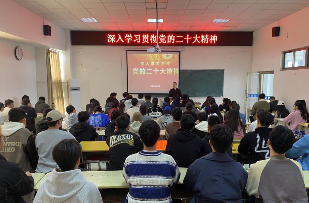 11月23日,体育学院在体育馆多媒体教室举办党的二十大精神宣讲会,学院党委书记徐晓宁作主题宣讲,学院全体学生党员和第66期入党积极分子培训班学员参加宣讲会。