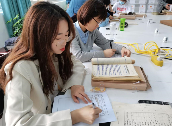 案卷号、案卷名、档案内容……学生们两两一组,仔细根据档案目录进行查找、在确认无误后才开始誊抄。历史学专业2019(1)班的霍嘉琪是第二批前来安庆市档案馆的学生,根据这次“建国初期三大改造”的学习主题,她选择从工商业的方面切入,抄录了“安庆胡玉美蚕豆酱的调查”的相关信息,并计划再深入了解中国共产党在全国范围内开展社会主义三大改造的详细情况。