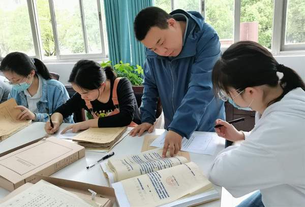 作为此次活动的负责人,李正君、郝佩林、陈锴会在学生抄录档案的过程中做好“巡视”,为学生们答疑解惑,讲解部分档案信息。其中,陈锴在撰写博士论文期间,就曾多次前往武汉市、上海市、平昌县等多地的档案馆查阅资料,对档案馆的运行情况有着较为熟悉的了解。在此次活动中,从确定抄录范围、提前联系档案馆负责人,再到查找具体的档案信息,陈锴都亲力亲为。