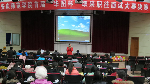 决赛分为自我介绍、PPT或DV展示以及专业测评三个环节。选手的沉着冷静,评委的点评犀利、主持人的灵活应变,给观众留下了深刻印象。来自物理与电气工程学院乐观活泼、善于沟通交流、成绩优秀的许晶晶,美术学院追求时尚、主修动画制作的王书炜,文学院对外汉语专业、热情奔放、擅长外联公关的周倩妮,给评委印象深刻,取得了较高的成绩。才艺展示环节中,选手们使出十八般武艺,既有动听的歌曲又有感情至深的诗朗诵,既有节奏分明的街舞表演又有节奏舒缓的戏曲表演。第三环节,职场测评中华图教育安庆分校的杨光与张丽老师根据选手们的工作意向向选手提问,虽然题目难度系数较大,但选手们却都能随机应变给出合理答案。最终二号选手许晶晶与六号选手周倩妮以她们优秀的表现夺得桂冠。比赛结束后,华图教育杨光老师对参加决赛的7位选手作了细致点评,在场的每位学生都受益匪浅。