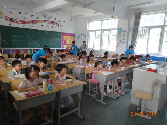 8月23日,外国语学院流动儿童家庭帮扶实践队以“中西荟萃 文化盛宴”为主题,在安庆市大观区十里中心学校开展简笔画、英语口语、黄梅戏等素质拓展课程。