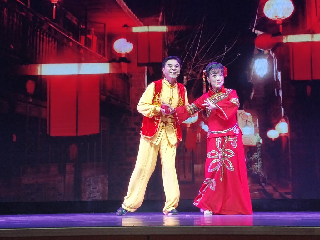 活动现场,来了很多郭霄珍的粉丝,郭霄珍与一级演员潘文格表演的黄梅小戏《闹花灯》以及经典对唱《海滩别》、《十五的月亮为谁圆》,委婉清新的唱腔和质朴细腻的表演给师生们带去一场场美妙的视觉冲击,现场气氛十分热烈。