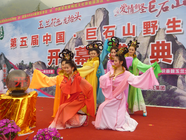 3月13日上午,第五届中国·巨石山野生玉兰节开幕式在安庆市巨石山景区广场举行。纽约国际官网黄梅戏表演专业学生获邀参加此次盛典,为参加开幕仪式的省、市、区各级领导及来自四面八方的近千名游客表演了黄梅戏经典剧目《天女散花》。