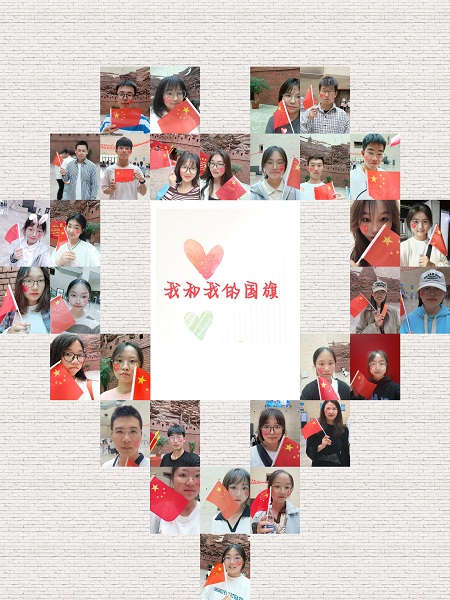 参观结束后,辅导员给同学们分发了国旗和国旗贴纸,同学们纷纷手举国旗,脸贴国旗贴纸,拿出手机拍下了与国旗的合影。“我和我的祖国,一刻也不能分割……”,合影结束后,在孙芮的带领下,同学们共同唱起《我和我的祖国》,大家挥舞手中的国旗,放声高歌,共同祝福伟大祖国的73周年华诞。