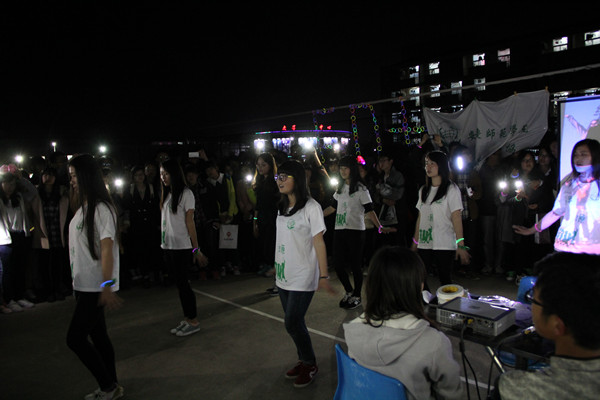 28日晚8点30分,二号楼的灯整齐划一地全部熄灭,以往灯火通明的寝室突然陷入了一片黑暗。一分钟后,几个寝室的灯光又齐刷刷地亮起,定睛一看,一个由灯光组成的“60+”字样出现在了二号楼的墙上。 “60+代表的是一种环保态度。”绿源负责人韩颖介绍道,“大家心中的地球一小时,无非是熄灯一小时,而我们希望大家不是仅仅做到关灯一个小时就够了,更重要的是平时生活中做出更多的努力,以达到后面加号的效果。”在“60+”的灯光映衬下,绿源也开始了自己了的不插电音乐会。音乐声中,同学们挥舞着手中的荧光棒和手机闪光灯为演唱的同学照亮。而整场演出的高潮也随即到来,在主持人的鼓动下,同学们纷纷走上舞台中央,手挽着手跳起了欢乐的舞蹈。本来只是来看一看演出,没想到也被吸引着进入人群起舞的沈同学开心的说:“绿源组织的地球一小时活动真的很赞,不仅让我了解到很多环保知识,更让我收获了一个快乐的夜晚。”