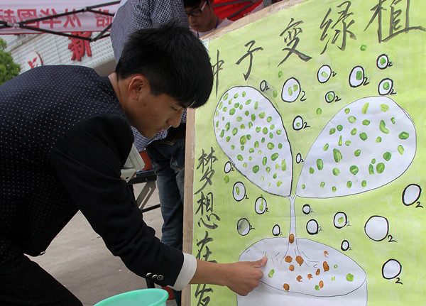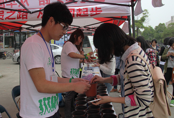 今年已经是第五届全国大学生绿植领养活动。今年的主题是“种子变绿植,梦想在发芽”,主打植物是佛甲草。佛甲草具有治霾和节能的特殊作用,今年选择佛甲草作为“绿植领养”的主打植物,与当下的焦点问题“雾霾”有关。此次“绿植领养”活动负责人陈珊珊说:“从第一届‘绿植领养’开始,我们协会就加入了进来,每年都会举行领养活动。但今年和以往不同,今年除了种子外,我们还新增了植苗佛甲草,佛甲草不仅容易成活,而且还可以抗霾,雾霾是现在的一个热点话题,发放佛甲草可以吸引到更多学生对雾霾和环境的关注。”(文/学生记者 吴悦 匡佳佳 图/学生记者 王巧)