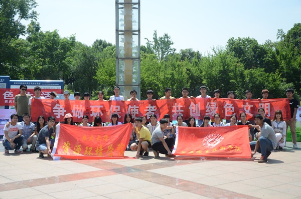 同建绿色温馨宜城,共享清澈碧水蓝天,6月5日上午,安庆师范学院资源环境学院的同学们分别来到了安庆市区的双井街社区和集贤路安徽理工学校处向居民们宣传环保理念,他们向街上来往的居民介绍世界环境日,并邀请居民在横幅上签字。签过字后,同学们还发放了由环保局提供的宣传单页、环保手册和购物袋,并向他们讲解环境保护的知识,让居民们更加了解环境保护的重要性。资源环境学院13级环境科学专业的陶春香说:“保护环境人人有责,希望通过宣传能让市民养成保护环境的习惯。”