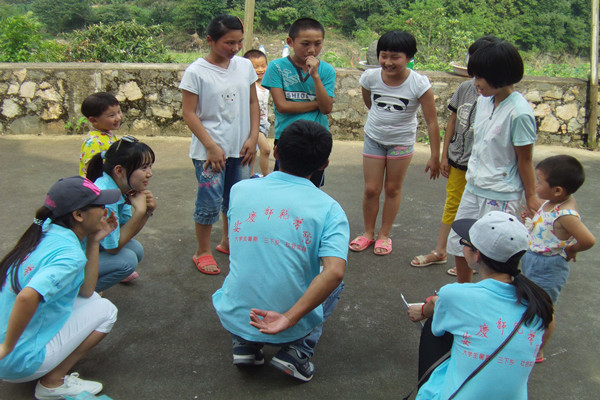 初见唐湾镇那群可爱的孩子们,队员们热情迎接并询问他们:“你多大了?”“你叫什么名字?”“别害羞,告诉姐姐你上几年级了?”孩子们很快就与队员们成了朋友。“子为姐姐”“江颖姐姐”……甜甜的童声融化了所有队员的心。这三天里,队员们通过素质拓展活动与孩子们拉近距离,对不同年级的孩子分别集中进行了暑假作业的辅导,同时进行基础知识科普,如夏季防暑、防吸血虫、防溺水等,并教会他们在歌声中表达积极向上的生活态度。