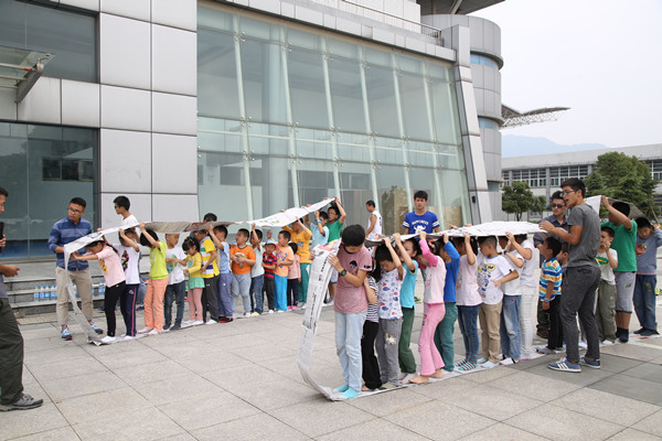 在活动总结环节,主持人告诉孩子们要学会感恩——感恩朋友,感恩老师,感恩父母。此次活动参与者中最大的孩子刘悠然今年十一岁,他扮演的是“哑人”,牵着的是一个小弟弟,刘悠然说:“牵小弟弟的时候,我想着一定要照顾好他,不能让他跌倒受伤,虽然挺累的,但是没关系。爸爸妈妈照顾我的时候,对我也是这么好的,我爱他们。”