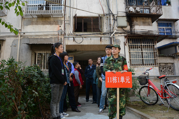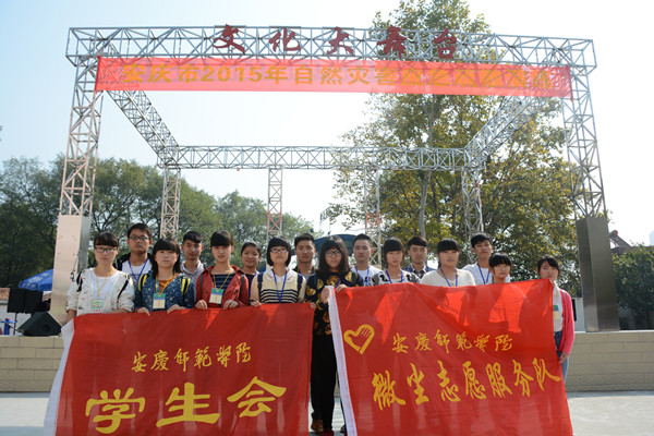 这是2015年安庆市自然灾害应急系统的演练现场。参与此次重大演练的除了专业人员,还有朱思聪等13名来自菱湖校区的青年志愿者团队,他们扮成伤员、想回去取贵重物品、参与救援的小区居民。演练分为“就地避难、安全巡查、准备救援、开展救援、震后返家”等六个环节。