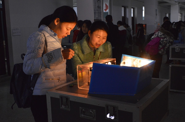 “这些仪器都是从科技馆专车运来,并有科技馆的工作人员在此值班。在学校举办这样的活动,学生足不出户就能亲手操作和感受科技的神奇魅力。”本次活动的负责人袁良燕说。28日下午,安庆市科技馆馆长也来到了活动现场,“能在大学校园里让学生亲手操作领悟科学原理、学习知识,正式此次活动的意义,同时也欢迎广大学生来科技馆参观。”(学生记者 丁晓燕)