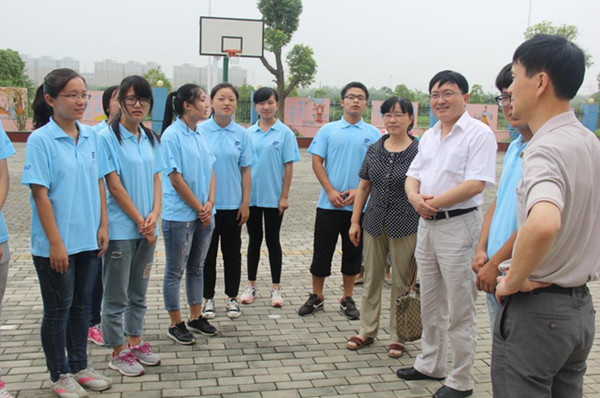 7月20日,外国语学院院长郝涂根、院党总支副书记王志红、副院长王先荣及辅导员代表王波、石卓义、吴敏在带队老师江瑞辰的陪同下,前往大观区十里中心学校慰问、指导该院大学生暑期“三下乡”社会实践活动,并与十里中心学校领导就暑期社会实践活动的开展及院校合作等问题进行了深入探讨。
