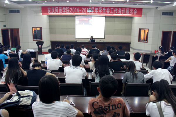 考评会上,各学院展示了关于他们开展的一系列特色鲜明的活动,为了充分体现他们为“争创一流学生会”所做出的努力:传媒学院“放下手机,走向操场”的撕名牌活动,物理与电气工程学院的好声音歌手大赛,青春主持人大赛……“富有特色固然好,能与自己专业结合起来,体现专业特色的活动更不易,比如资源环境学院‘六五环境日’,政治学院结合自己思想政治优势开展思想政治工作,等等。”负责人郑龙龙说。每个学院代表一一展示了他们一年里的努力与收获,赢得台下掌声无数。而评比结束后,评委亦会结合各学院书面材料汇总,最终的结果将于近期公布。