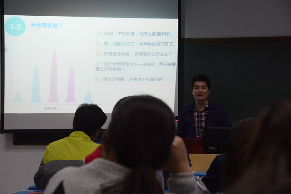 如今随着大数据时代的到来,绘画不仅包括手绘,也包括软件制图,张昀昊老师从手绘那些事儿开始向大家介绍手绘的概念:"手绘包括绘画能力和设计思维,很多人认为手绘是只要把图画好看就行了,这是误区,手绘最重要的是设计思维。"
