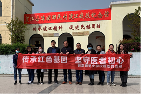 为深入开展党史学习教育,弘扬革命精神和优良传统,4月17日,校医院党支部全体党员赴望江县漳湖渡江战役纪念馆开展“传承红色基因 坚守医者初心”主题党日活动。