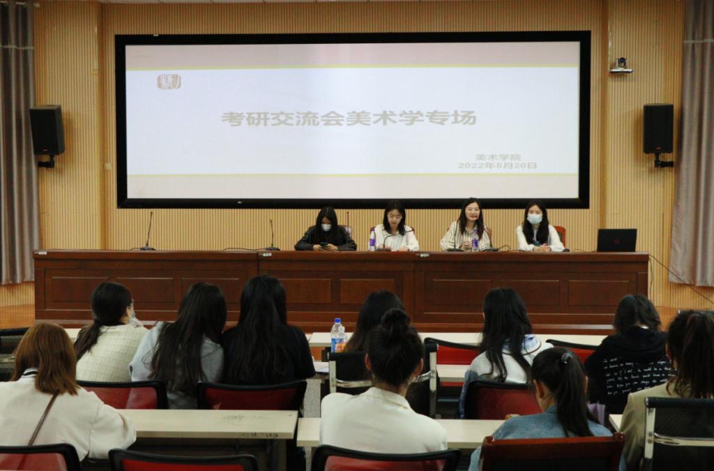 近日,美术学院举办两场考研经验交流会。该院环境设计专业、视觉传达设计专业、美术学专业的7位优秀毕业生应邀来到现场,为200余位学生带来两场经验分享报告。