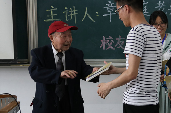 “这已经是我第二次回到学校了,我还在不断追求、不断进步。希望我今天的讲话可以给在座的同学们一些启发和帮助,而不是空来一场。”当93岁的章光庭老先生再次站到母校讲台上时,已是耄耋之年。