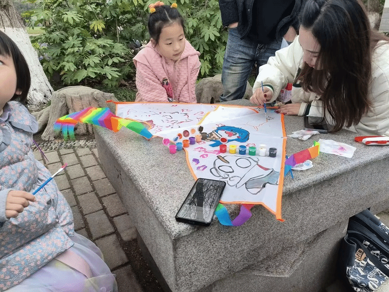 在同学们的鼓励下,在公园游玩的很多小朋友纷纷加入绘制风筝的行列。孩子们拿起手中的画笔,用心中的美好绘制出一个个色彩波澜的风筝。同学们为小朋友们讲述雷锋故事,教唱雷锋歌曲,以此来倡导小朋友们学习雷锋无私奉献的精神,引导小朋友树立正确的人生观和价值观。