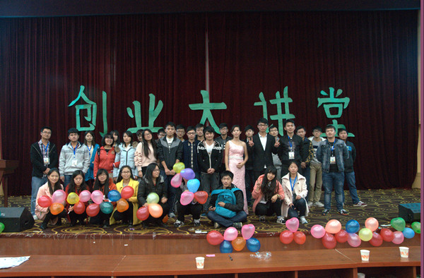 “我创业已经25年了。”安徽共创商业管理股份有限公司董事长丁明晓在台上深情讲述着。“毛头小子初来安庆——怎样掘到人生第一桶金——生意亏损欠债100多万——如何东山再起”,丁明晓用讲故事的方式生动地描绘了自己25年来曲折的创业经历。“看到这幅图片同学们想到了什么?”只见图片上是一个妖娆性感的摩登女郎,“这是一个广告图片,它告诉我们,在如今的互联网时代,我们只有够新够有创意才能成功。”丁明晓说。传奇的创业故事和活泼有趣的语言也让现场的气氛活跃起来。
