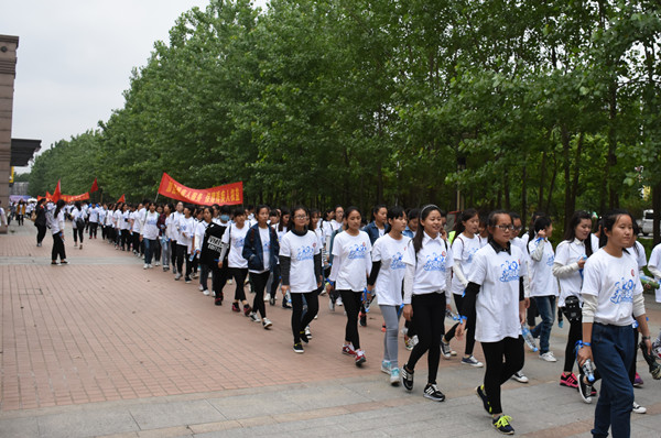 当天早上7点,当大多数人还沉浸在周日香甜的梦乡中,爱心志愿者们就来到南门操场,尽管早上天空下起了小雨,但丝毫没有影响同学们的热情。大家早早穿好志愿者服装,系好蓝色丝带,依次排队集合。