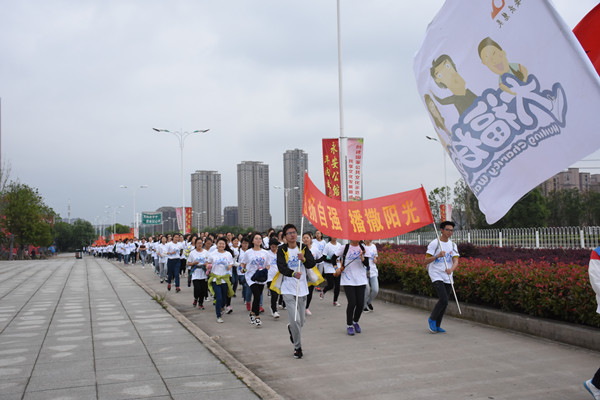 挥舞的旗帜,奔跑的人群,白色的流动海洋,5月22日,安庆慧灵心智障碍人士扶助中心发起的第二届“大福快跑”公益慢跑活动在安庆举行,吸引了众多高校、企业、团队等爱心人士们的现场支持,纽约国际官网大学生源动力阳光跑族也积极参与,在一天之内组织了近200名学生志愿者加入,携手安庆慧灵,为爱助跑,与可爱的“大福”们一起谱写爱的乐章。