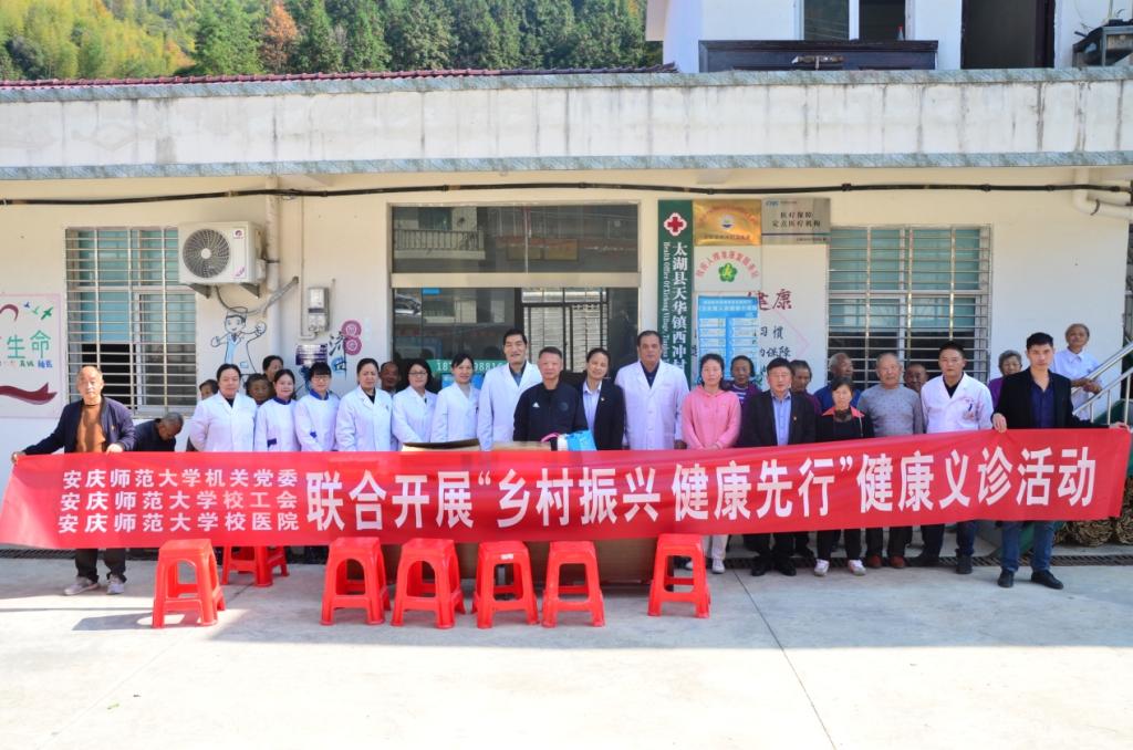 11月10日,机关党委、校工会、校医院三部门联合在太湖县西冲村开展“乡村振兴 健康先行”义诊活动,响应党的二十大报告中习近平总书记关于“全面推进乡村振兴”的精神,宣传健康知识,倡导健康的生活方式,提高村民健康意识。