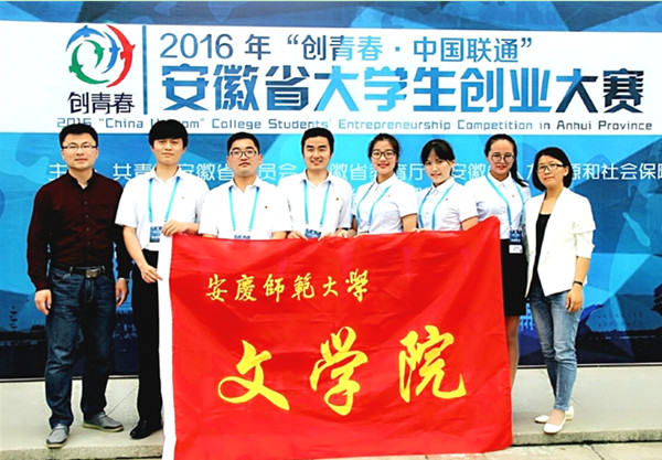 文学院学生在创新创业大赛上取得优秀成绩,是学院重视对学生创新意识的培养,大力支持和鼓励学生创新创业的结果。在“创青春”安徽省大学生创业大赛启动之初,文学院便积极宣传组织此次比赛,邀请校团委夏斐老师开展“创青春”知识培训,讲解竞赛要求和参赛中须注意的问题,进行针对性指导,并鼓励同学们拓宽思路,发散思维,提升自身能力参加比赛。在选拔赛时,文学院申报了创业实践、创业计划、公益计划三个类别共16件作品,在各位指导老师的悉心指导下,在团队成员的团结努力下,文学院有6支队伍进入校复赛,3支队伍进入校决赛,2支队伍进入安徽省创业大赛终审决赛。