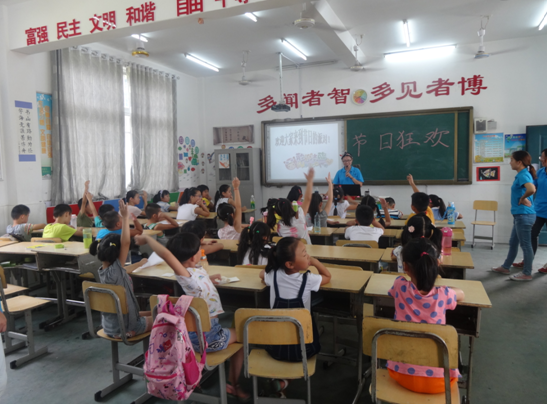 “同学们你们知道哪些节日啊?”“大家知道春节用英语怎么说吗?”“有谁知道关于这个节日的传说或者典故吗?”8月25日上午,外国语学院流动儿童家庭帮扶实践队充分利用专业优势,在安庆市大观区十里中心学校开设了英语互动课堂。来自5个年级35名学生在志愿者老师们的带领下,以“Happy Holiday”为主题学习了有关节日的英语单词和相关知识。