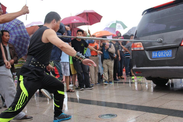 9月14日下午,武术队的队员们坐了4个多小时的大巴抵达南京,马不停蹄地开始彩排以及适应场地。第二天,当队员们摩拳擦掌准备登上舞台的时候,南京下起了连绵细雨。突来的雨丝毫没有影响队员们的热情,雨中武旗、雨中太极、雨中双截棍等等项目有条不紊接连上场。整体节目精彩,观众掌声雷动,一片欢呼叫好。其中2014级体育教育专业葛震与休闲体育专业伍杨的金枪锁喉与安庆太极拳名师程俊峰老师金枪顶汽车的表演,均令场下观众惊叹不已。(学生通讯员 黄露露)