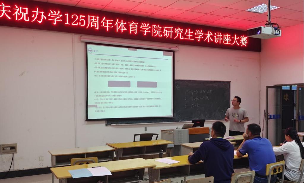5月29日,体育学院举行“庆祝办学125周年体育学院研究生学术讲座大赛”,提高研究生的学术素养,提升研究生的科研水平,锻炼研究生的表达能力。