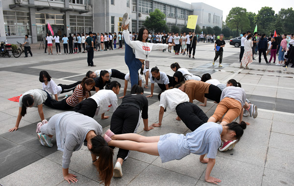 30分钟后,每个队开始了展示。他们以洪亮的嗓子喊出了自己的口号,并且用叠罗汉的姿势完成了10人腾空的任务。“在这个活动中,我慢慢地有了一种归属感,我觉得我们是一队的,我们每个人都应该团结起来。”体育教育2016级2班的于海说。
