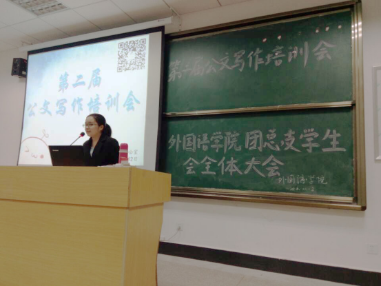 11月12日下午,外国语学院召开第二届公文写作培训会。院第十四届团总支学生会全体成员参加了本次会议。