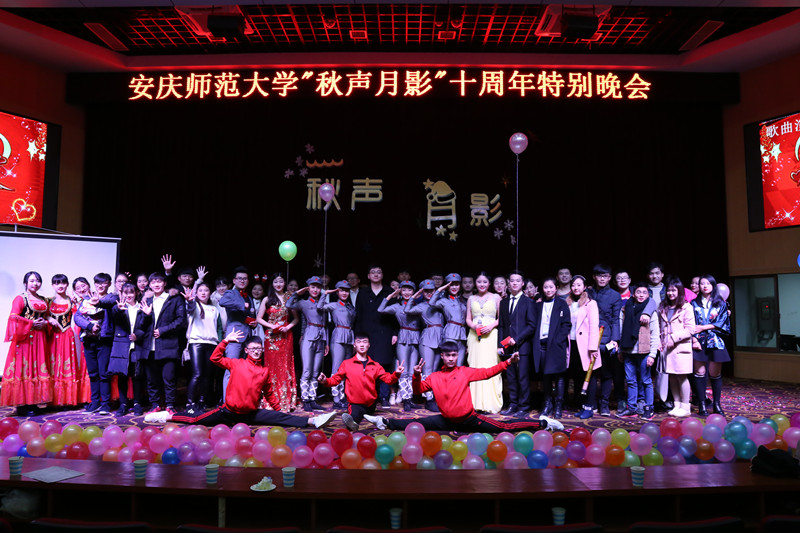 今年是“秋声月影”晚会十周年纪念日,伴随着温情舒缓的音乐,讲述晚会十年成长变迁的祝福视频在屏幕上播放出来。学生会各部门纷纷在视频中表达了对本届晚会的祝福以及对未来的美好祈愿。“祝你生日快乐,祝你生日快乐……”在主持人带领下,500余名观众齐唱生日歌,为“秋声月影”晚会送上了最真挚的生日祝福。