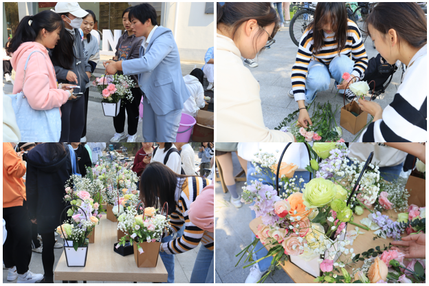 “大荔枝”“洋桔梗”“紫罗兰”“尤加利叶”……11月9日,生命科学学院在东苑食堂门口举办“陌上花开,礼赞二十大”的插花活动,进一步落实《生命科学学院2022级新生“1+3+N”模式入学教育实施方案》,增强专业认同感,加强美育教育。活动吸引了近200名学生参与。