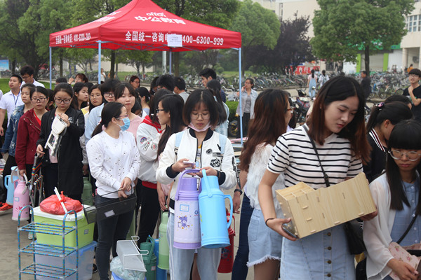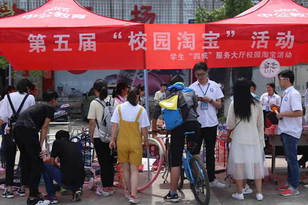 “‘校园淘宝’一方面为大四毕业生服务,给他们提供便捷,避免资源浪费;另一方面为在校学生及附近居民服务,提供一个物美价廉的二手物品交易平台。活动开展的五年来,我们一直践行着节约资源、创建绿色校园的精神。”活动负责人郑文静说。(文/学生记者 汪习习 柯贵鹏 图/学生记者 王瑞禛 张正)