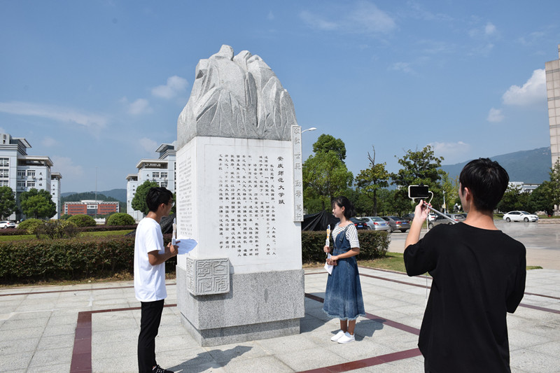 在2017级物理与电气工程学院王晓珂和音乐学院陆思凡两位主播的带领下,从校园南门开始,沿途经校训石、校史墙、气势恢宏的行政楼、肃穆矗立的教学楼、宽敞明亮的图书馆、干净整洁的宿舍楼、简约大气的主题餐厅等,两位主播对校内的各个景点和建筑都进行了详细的介绍。不仅向新生展示了校园的优美环境,也增加了新生对大学学习生活的了解和认识。