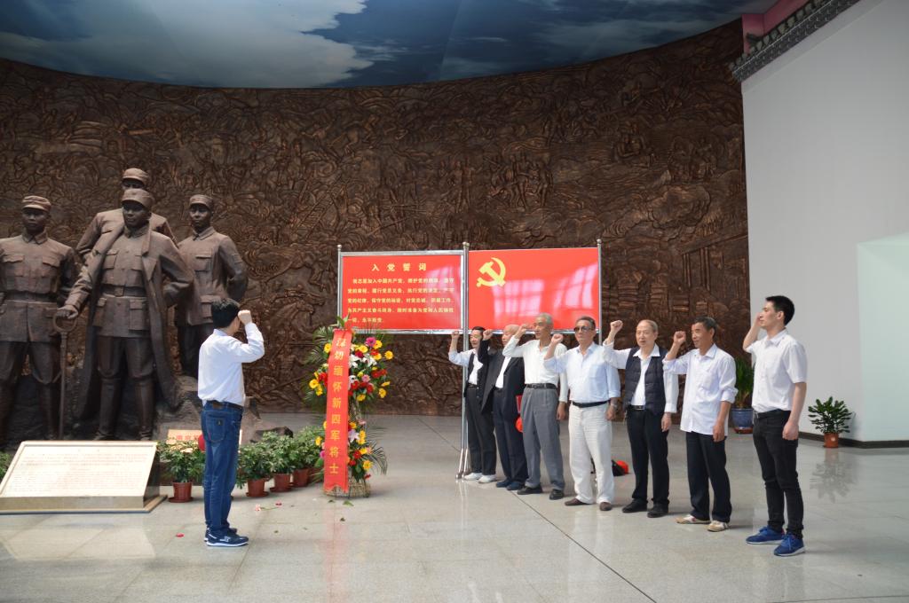 参观活动结束后,退休党员面对鲜红的党旗和新四军将士雕塑,重温入党誓词。(陈正海)