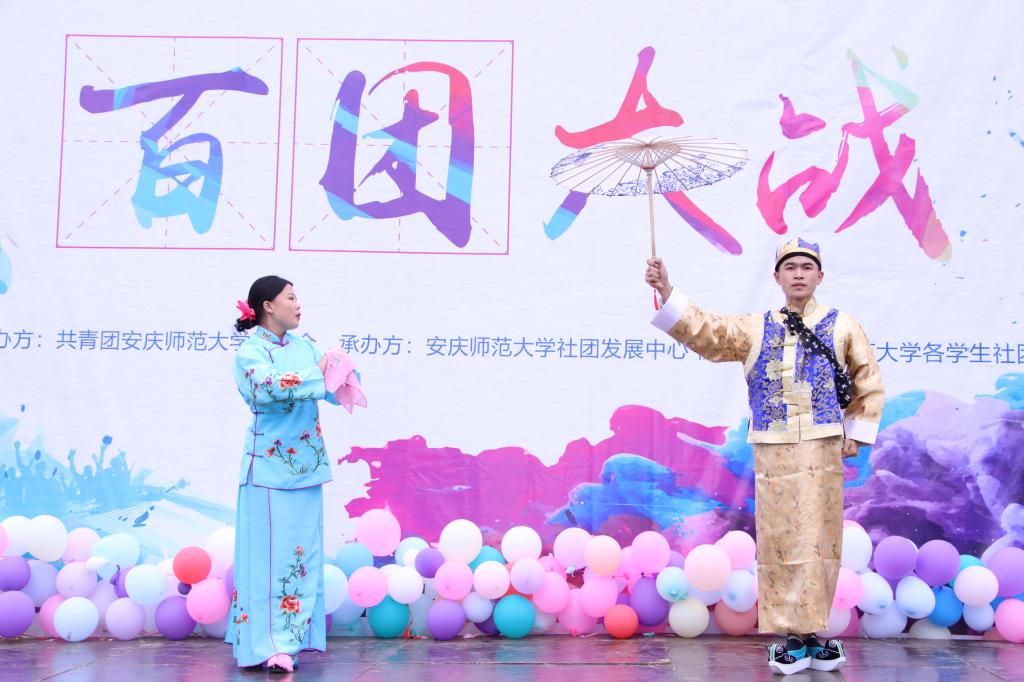 压轴出场的是具有安庆特色的黄梅戏曲目《到底人间欢乐多》和《蔡郎哥哥他要走》,悠扬婉转的唱腔一开口就吸引了不少同学的目光,加上默契十足的动作表演,让人倍感亲切。新闻学专业2019(2)班的夏子晴来自海南省,她在现场观看了两段黄梅戏表演,“虽然对于我这个外地人来说,其中的一些方言没有听懂,但这种欢快愉悦的氛围却十分有感染力,让我感受到了黄梅戏的魅力。”