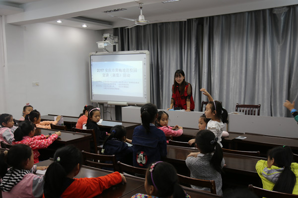 志愿者们的表现也得到了许多学校师生的认可。“这群大学生的行为很有意义,通过他们的宣讲,我们的学生了解到了不少知识,展示了大学生的风采。”安庆公园小学副校长张晓玲说。(文/学生记者 施玲慧 图/学生记者 丁超)