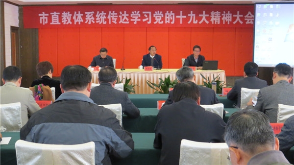 10月30日下午,安庆市直教体系统学习传达党的十九大精神会议在迎宾馆举行,图书馆馆长董根明教授应邀赴会并作了题为《学习领会十九大精神 推动教育体育事业新发展》的专题辅导报告。
