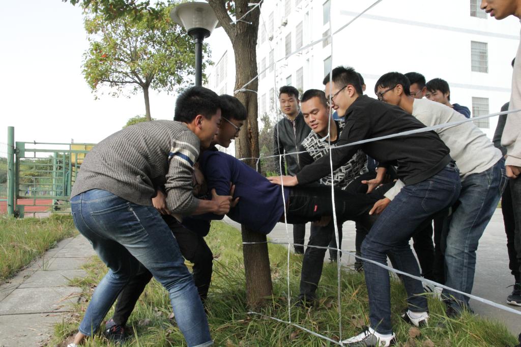 活动共有六个环节,分别是破冰、团队建设、弦歌不断、智力电网、硫酸河、毕业墙。活动开始在培训师的带领下,同学们互相认识,成功破冰。45名同学被分成了两队,在大家的共同协作之下顺利完成团队建设,展现了团队的力量,之后进行了“弦歌不断”和“智力电网”两个训练项目,通过这两个项目,同学们深刻体会到了彼此信任和团队合作的强大力量。