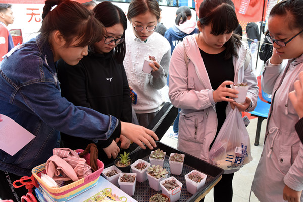 植物盆栽、暖手宝、懒人桌、活页本……这些生活中贴心精致的物件,在11月10日至11月12日, 350余名志愿者在龙山校区各个食堂门口“设摊摆点”的义卖中,可谓是应有尽有。这是物理与电气工程学院举办的第三届“物·让爱传递”爱心义卖会,共筹集善款约5000元,全部捐助安庆市宜秀区永林小学。