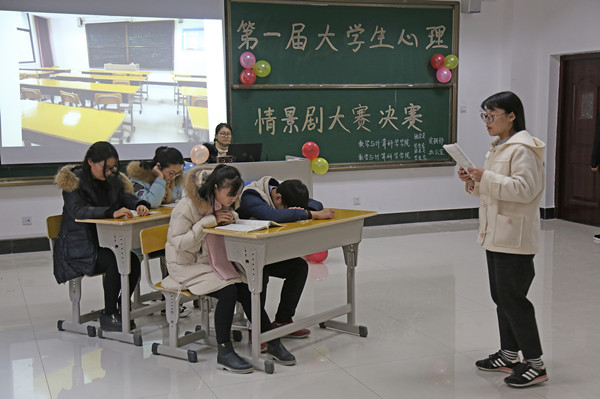 信息与计算科学专业2017(1)班的《变形记》讲述了内向的大学新生在老师同学们的帮助下,战胜自己,走出自我小世界的动人故事。寝室关系问题令人头疼,但只要大家相互包容,就可以轻松解决,数学与应用数学专业2016(1)班的《包容多一点,幸福久一点》让在场观众有了共鸣。数学与应用数学专业2016(2)班的《成长之路》从校园恋情入手,讲述了一个有关成长、爱情和自我救赎的故事……6个团队的作品各有特色,同学们凭借优秀的剧本和精湛的演技,赢得了阵阵掌声。