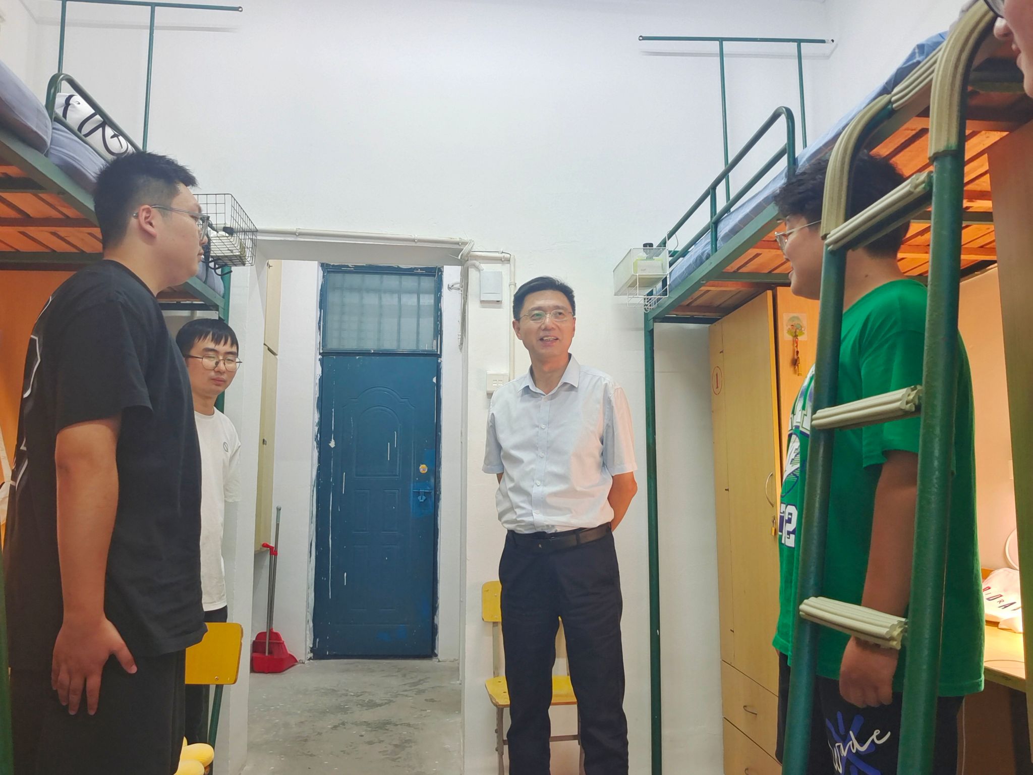 8月31日,数理学院迎来2023级663名新生,学院党委书记陆健带领班子成员、新生辅导员深入新生班级学生宿舍进行走访慰问。