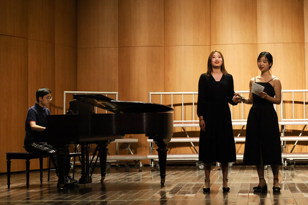 重唱《库斯科邮车——青春舞曲》《费加罗的婚礼——微风轻轻吹过》带观众感受异国风情,高度体现学生的专业性强度、音乐配合能力及在舞台上的展现能力。