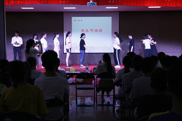 除了有好看、好听的节目,现场还有趣味十足的游戏环节。在游戏《猜歌王》环节,工作人员播放15秒歌曲,有的选手立刻脱口而出下一句歌词,有的则互相讨论,台下观众也纷纷加入进来,说着自己的答案。决赛阶段《演技传声筒》竞争异常激烈,第一位选手观看特定的视频片段后,在60秒内通过肢体或者声音来传递信息给第二位选手,依次进行至第四位。最终,2017级材料化学(2)班代表队在限定时间内猜出的台词最多,取得了本场活动第一名的好成绩。