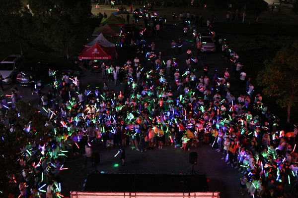 800个荧光棒,200个发光发箍,30个手指灯……活动从一个月前就开始了准备,活动现场60多个工作人员,从早上就开始在新华广场搭建舞台和摆点准备。“今年的荧光夜跑挺成功的。相较往年,此次我们在途中设置了‘温馨’的荧光路标,虽然跑步的形式无法创新,但我们在气氛的营造上下了很大的功夫,希望能给同学们带来更好的体验,感受到跑步的快乐。”会长吴家辉说。(文/学生记者 汪习习 图/学生记者 朱羽 赵文轩)