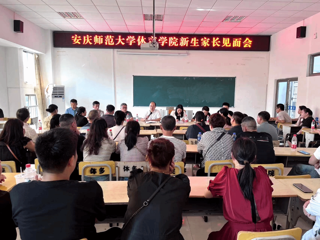 8月31日,体育学院新生报到伊始,在体育馆多媒体教室举行2023级新生家长见面会。受学院党委书记委派,学院党委副书记王玮主持见面会,副院长林秋菊、王晓东、部分专业负责人和新生班级辅导员参加会议。80余名学生家长参加会议并做交流。